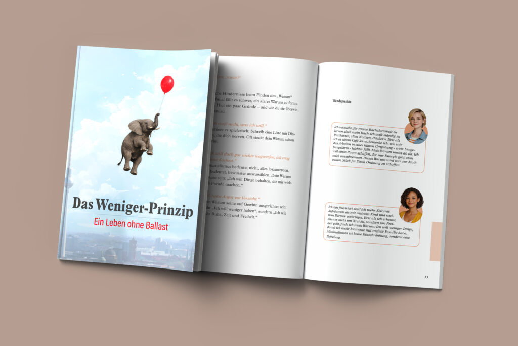 Was Du besonders schätzen wirst: Du wirst nicht losgelassen. Das Buch denkt weiter mit. Es spricht auch die Momente an, in denen Zweifel kommen, Rückfälle passieren oder alte Muster wieder anklopfen. Genau dort entsteht Verbindung – zu Dir selbst und zu einer wachsenden Gemeinschaft, die sich ebenfalls für weniger Ballast und mehr Leben entscheiden. Du beginnst, anders hinzuschauen; auf Besitz, auf Zeit, auf Dich.