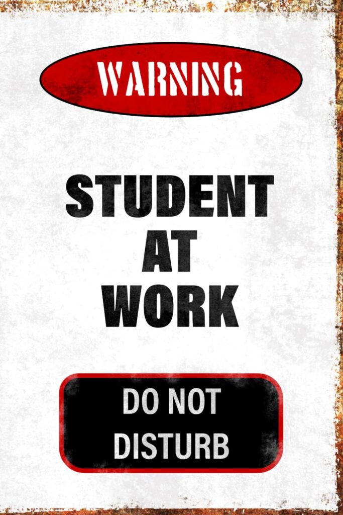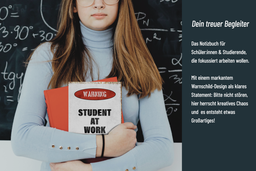 Notizbuch für Schüler & Studierende – „Warning: Student at Work – Do Not Disturb“